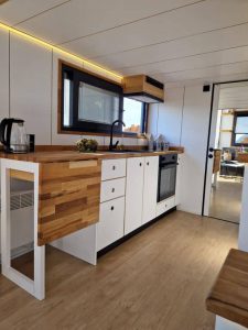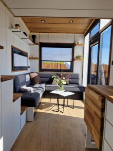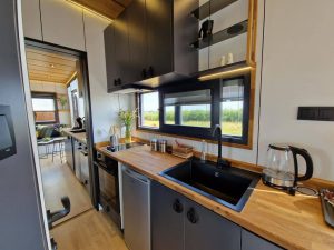 Nos superbes Tiny Houses à superficie variable (entre 30 et 40 m²) peuvent accueillir 2 à 4 personnes. Trois d’entre elles disposent de lits doubles, tandis que la dernière est équipée d’un lit double et de deux lits simples (linge de lit inclus). L’idéal pour un week-end en amoureux ou avec vos petits bouts. Elles disposent également toutes d’une cuisine équipée, d’une douche et de tout le confort nécessaire. Vous bénéficierez d’une terrasse où admirer les étoiles. Le petit plus ? Chaque Tiny dispose d’un jacuzzi privatif.